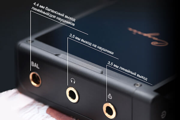 Выходы А01: 3.5 мм наушники, 3.5 мм линейный, 4.4 балансный совмещенный наушники/линейный